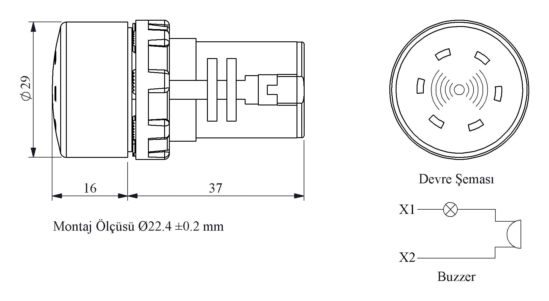 MB Series Plastic with LED 12V AC/DC 22 mm Buzzer
