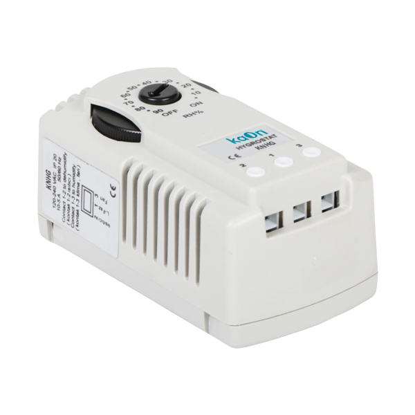 Mechanical hygrostat for control of relative humidity within the control cabinet. Versatile functionality depending on requirement: